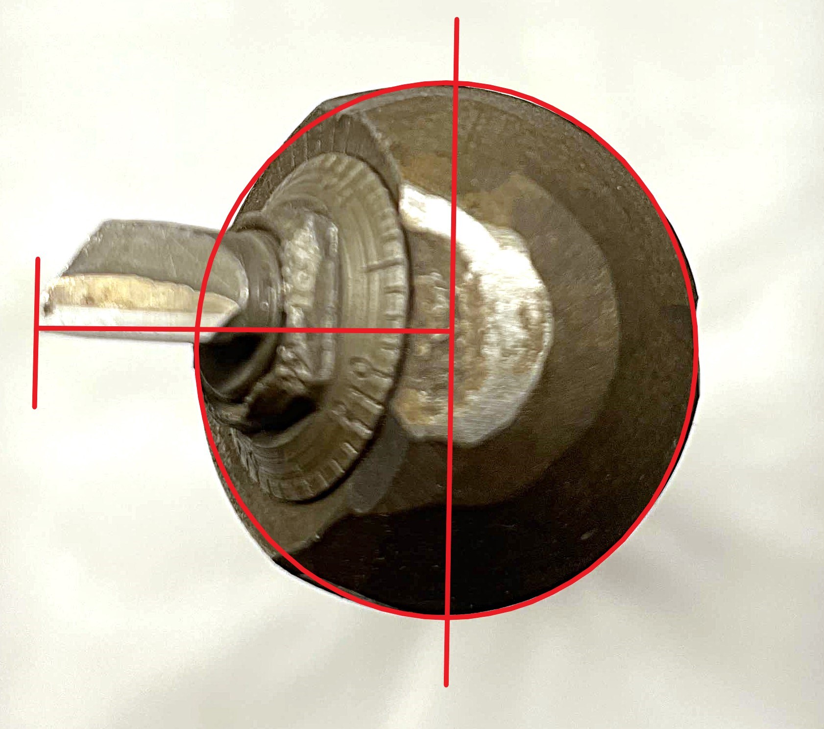 4. Using calipers, measure the distance from the tip of the cutting material to the center of the head. On many boring bars (but not all, such as the one shown below), there will be a straight line across the center which will help you measure. If this line is not present, try to approximate the center point as closely as you can.