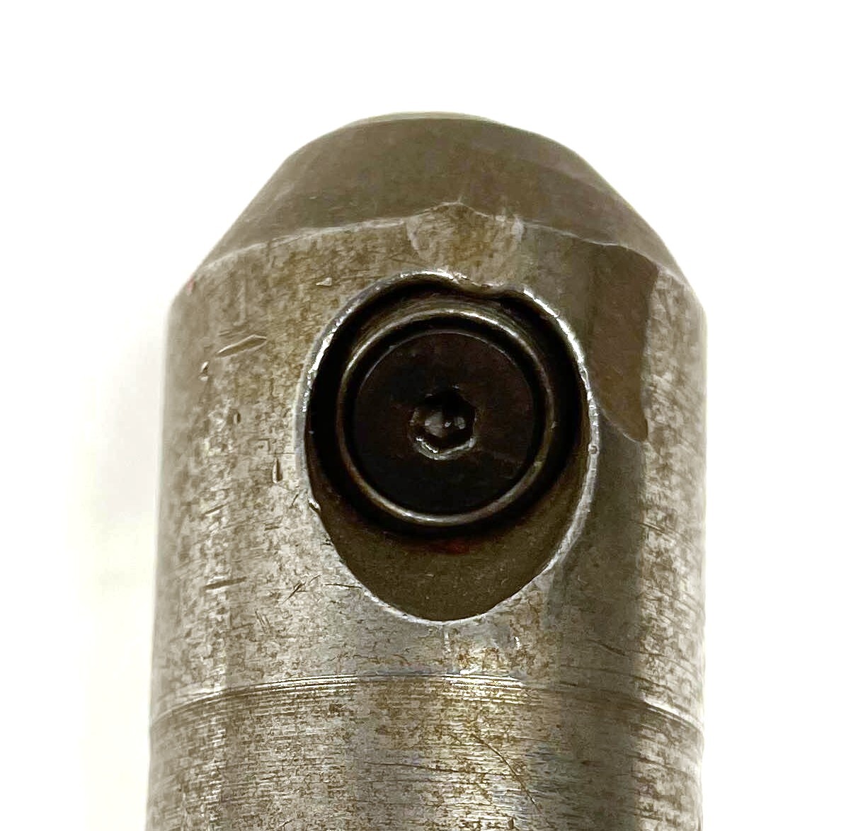 Adjustable boring bars may have cartridges that hold indexable inserts. The easiest way to differentiate these from the integral / carbide brazed cartridges is that these inserts will be held by some mechanism, such as an insert screw seen above, or an insert clamp. These are useful because the inserts can be swapped out in order to replace the cutting edge when it gets worn down. These often will have their own labeling and will add value, so include this part # / labeling in the listing whenever available.