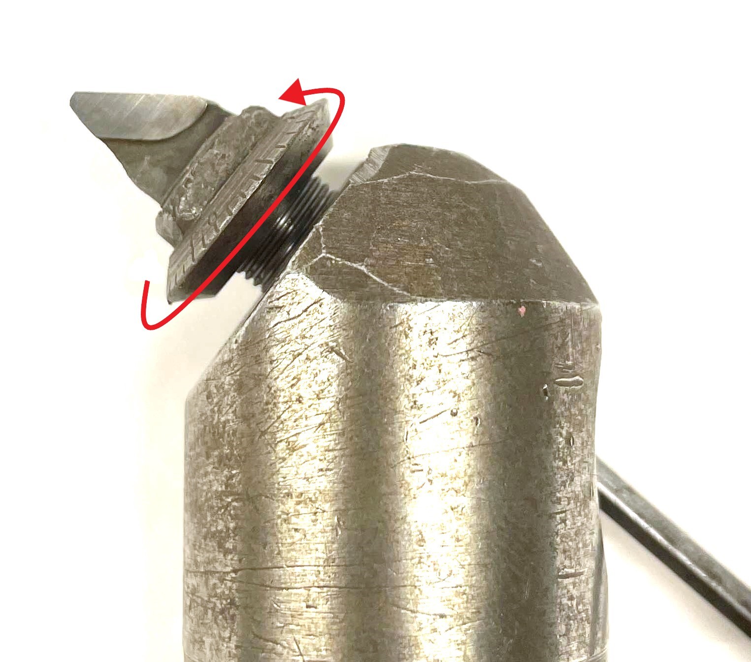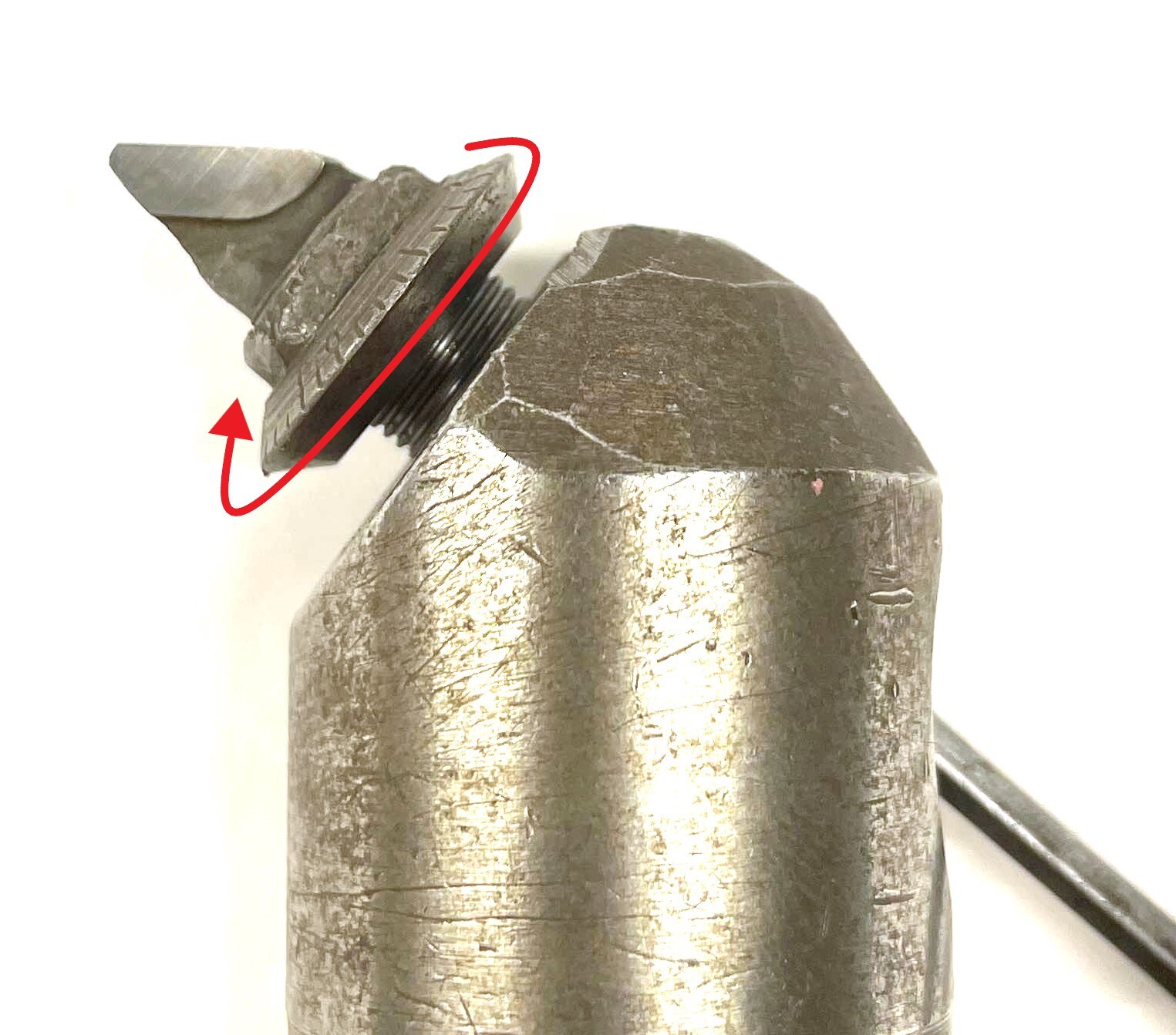 2. Loosen the screw, and then turn the adjustment dial all the way towards the carbide tip / insert pocket. You may need to use a wrench if the dial is difficult to move by hand.