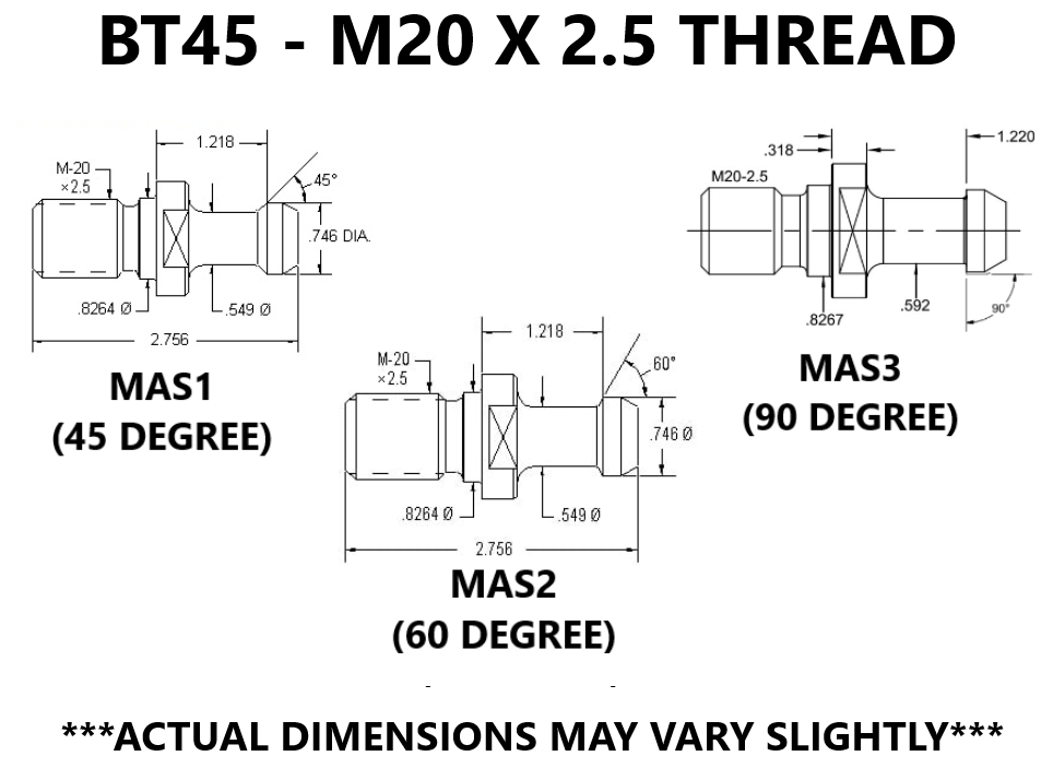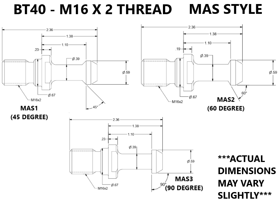 STEP 4: USING ANGLE GAGES, SORT THE "PASS" PAN INTO 5 SMALLER PANS LABELED 45 DEGREE MAS I, 60 DEGREE MAS II, 90 DEGREE MAS III, DIN ( 75 DEGREE, WIDER MAS III), & ANSI (45 DEGREE, THE SHORT ONE). REFER TO DIMENSION CHARTS IN PICTURES FOR REFERENCE.