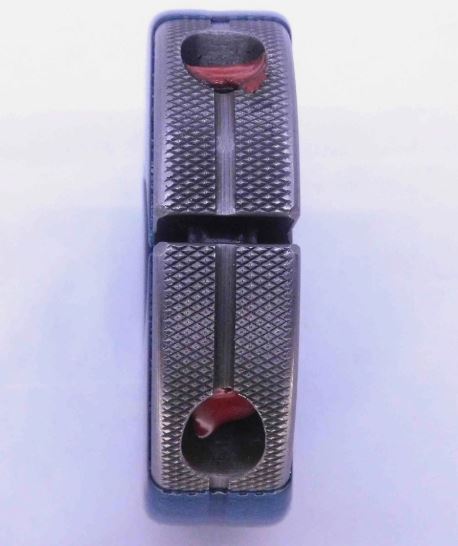3. Hold the gage by the size marking (for example "1/4 - 28 UNF 3A" - this labeling should always be unwaxed)