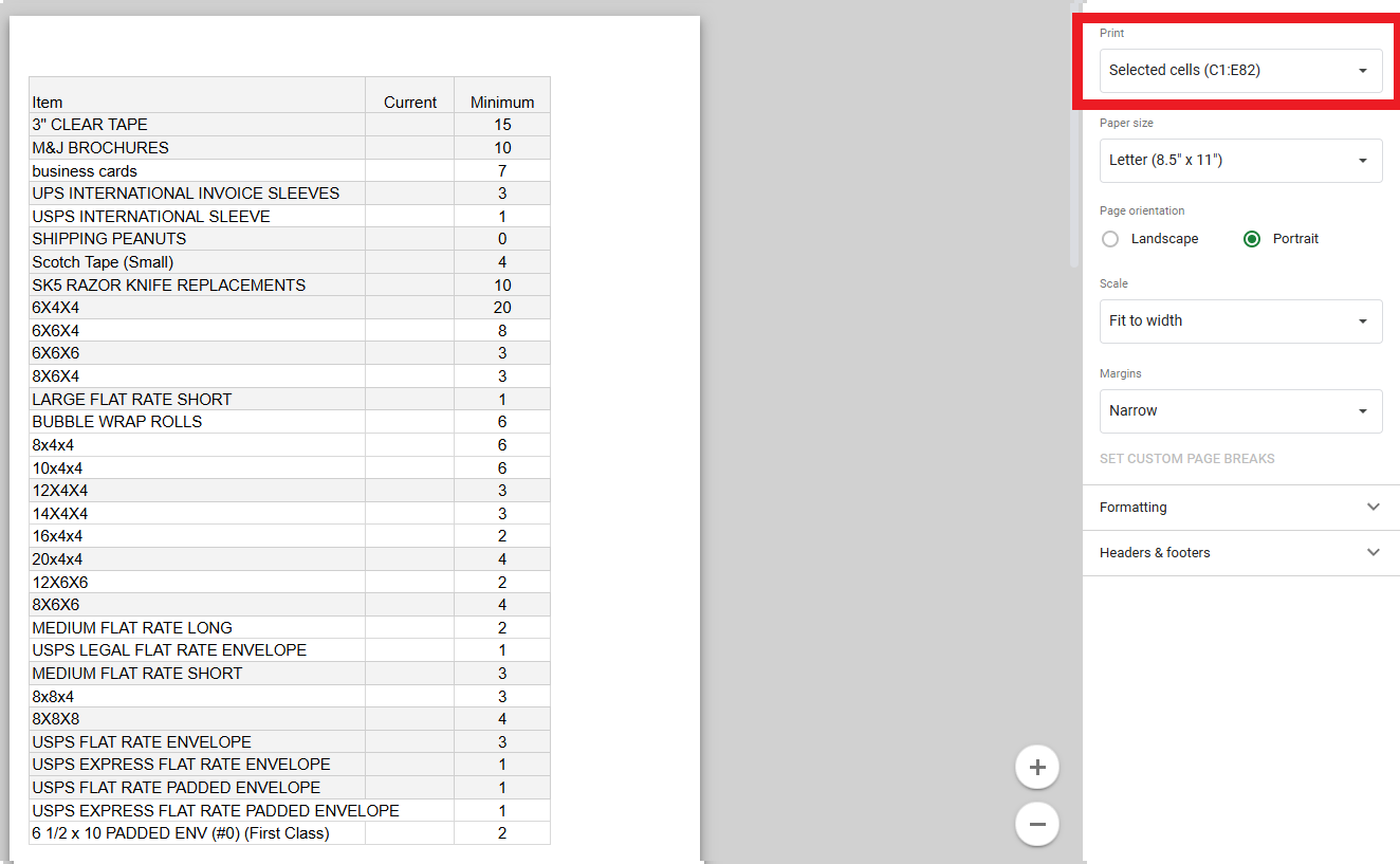 ii. 6x8 bags (or similar size) -> Label: SMALL BAGS