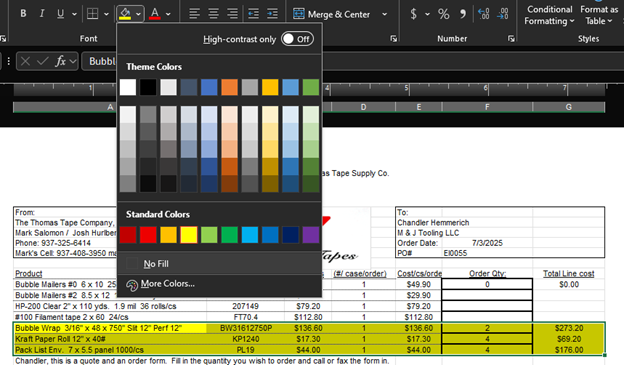 4. For shipments that are going from M & J Tooling to another company: