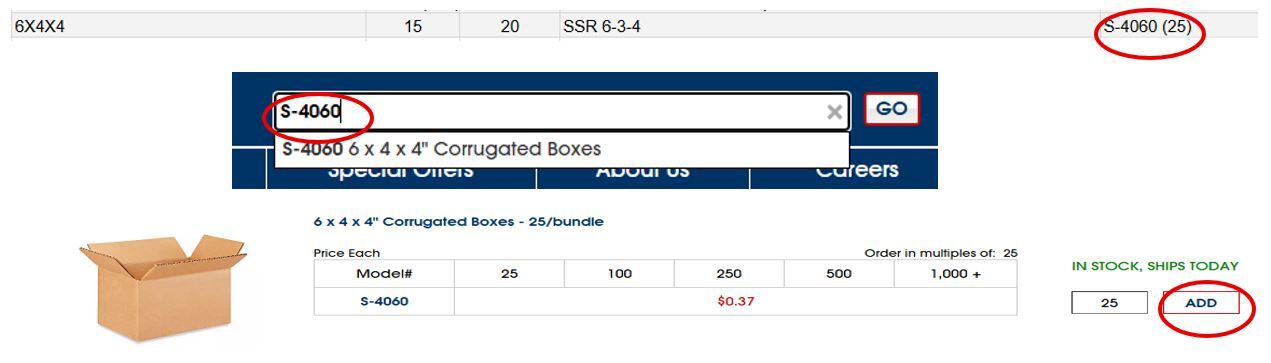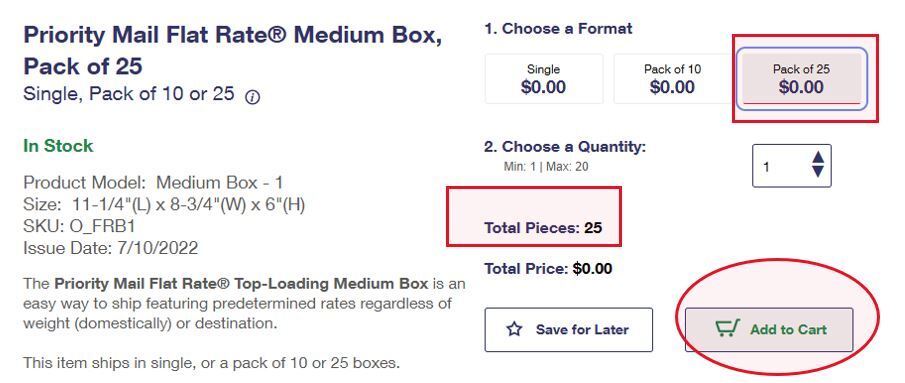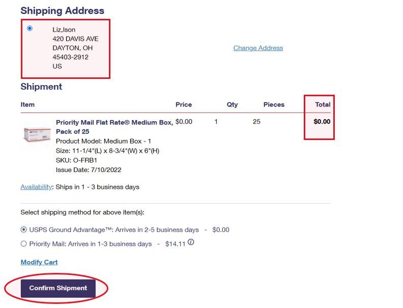4. Repeat as necessary for all items being shipped