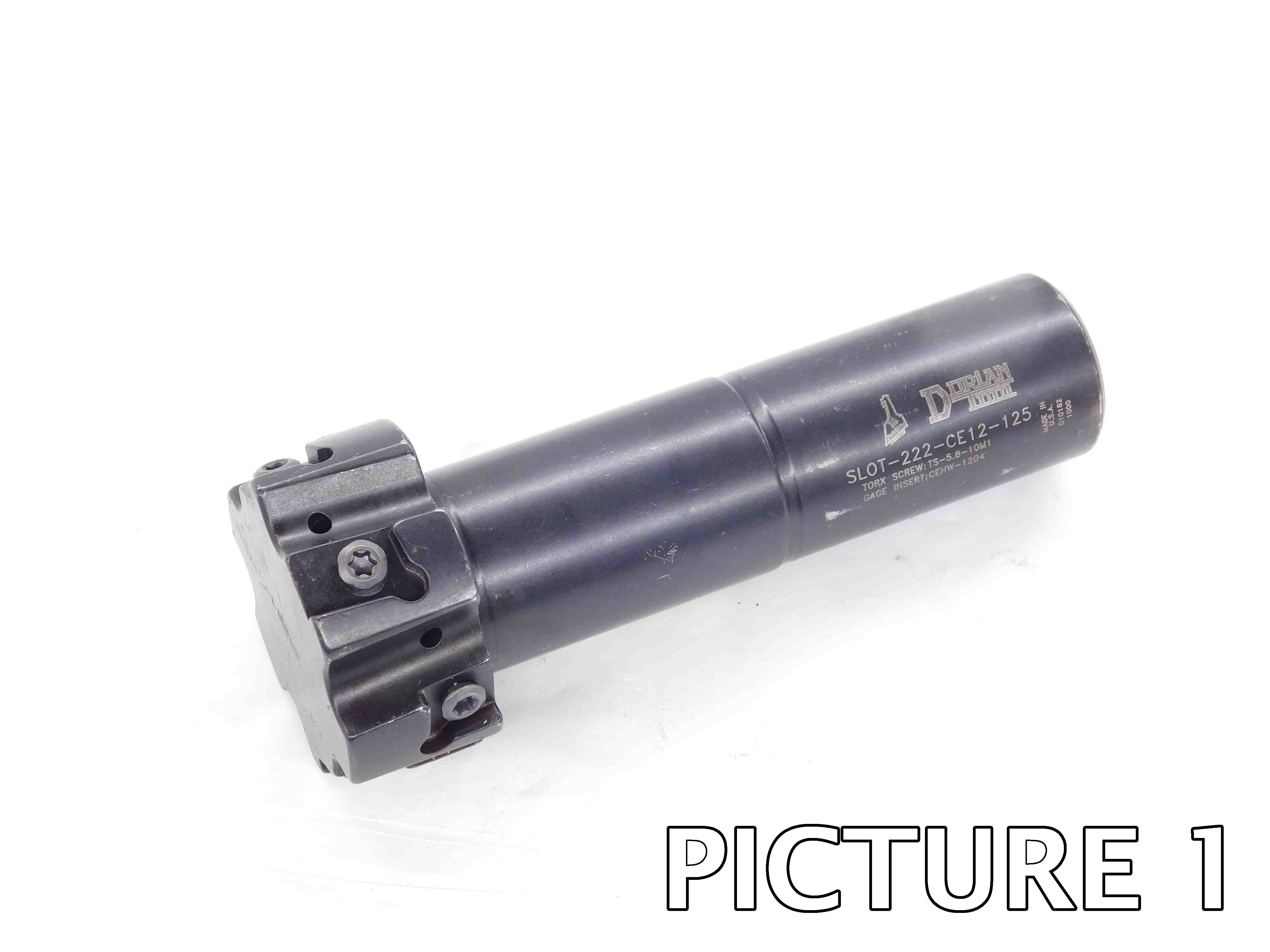 1st Picture: A three-quarters (or "3D") shot of the cutter, with the working end facing the camera. If the cutter is indexable, make sure that at least one of the inserts (or insert pockets) is fully visible in this picture. If there is any packaging, it should be included in this picture as well.