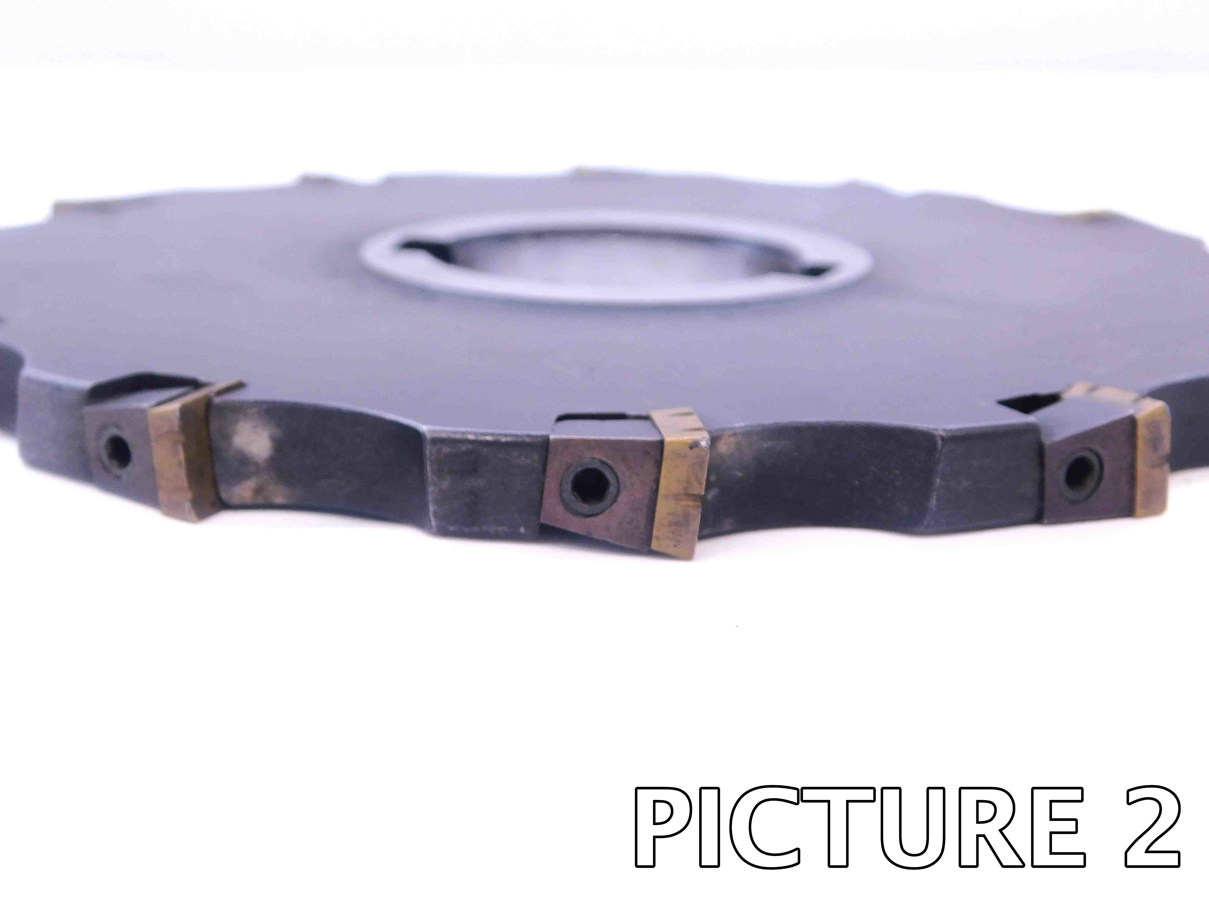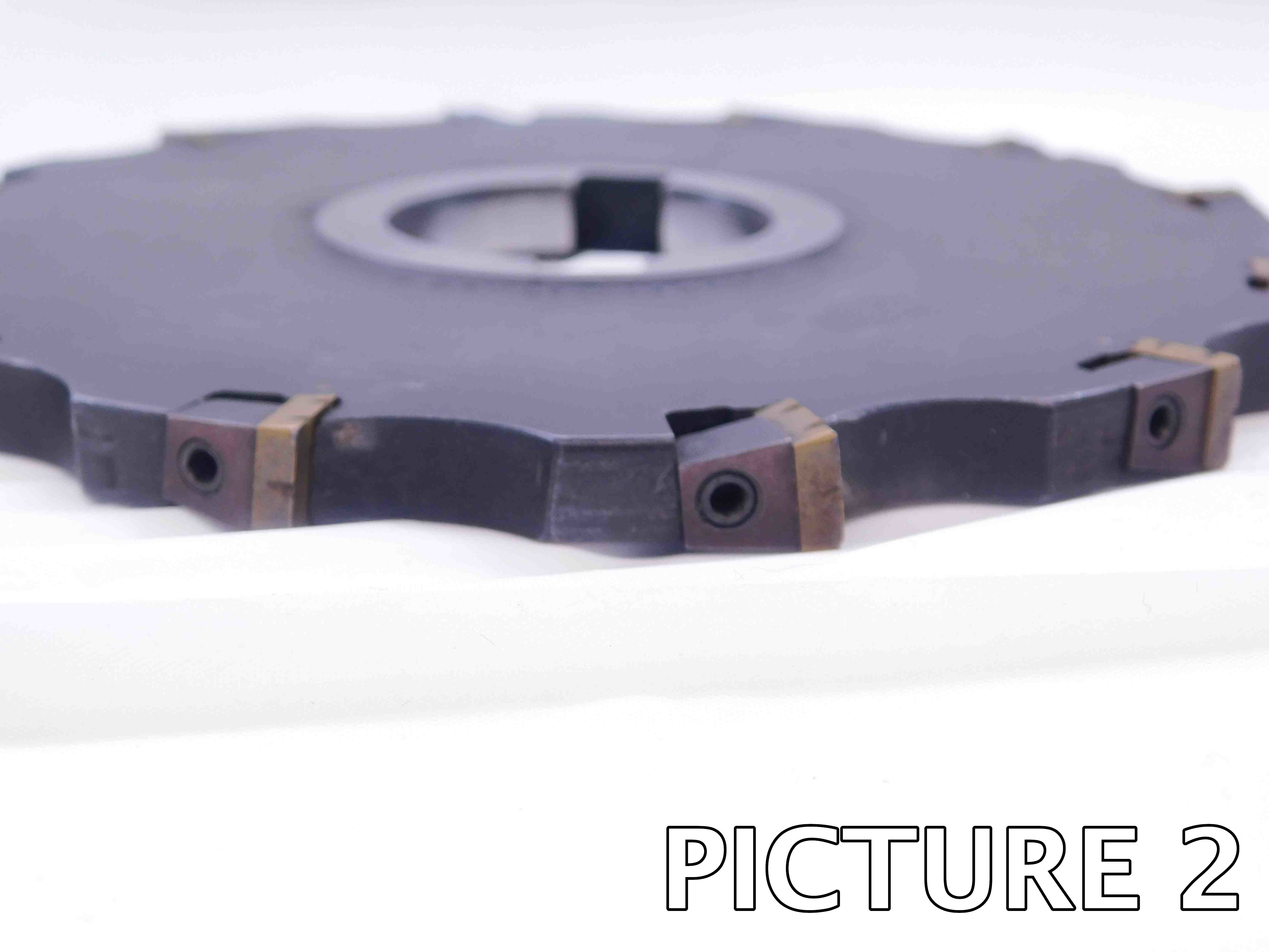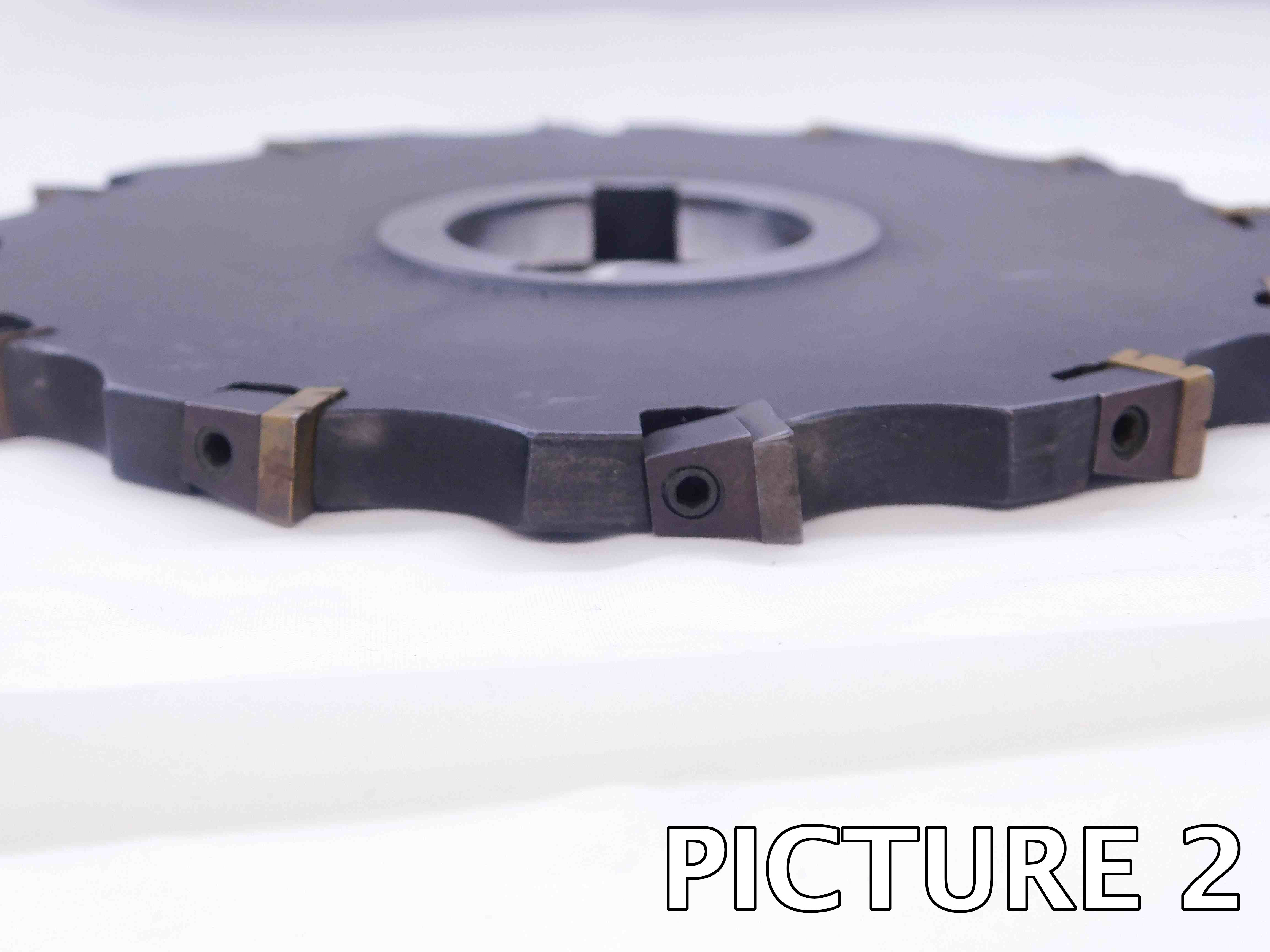 Indexable cutters: Multiple close-up shots showing all of the insert pockets from the side, as shown in the second example below. If possible, try to get 2-4 pockets in each picture in order to reduce the number of pictures you have to take. These pictures must be present on all used indexable side milling cutters! The insert pockets are the most important part of the tool and their condition must always be shown clearly! ***If a cutter is NEW, only one picture is necessary since there will not be any wear / damage that needs to be shown***